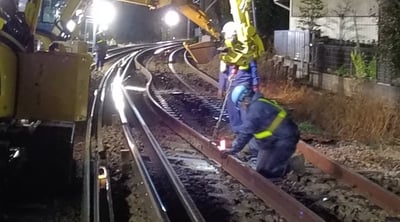 既設レールとロングレールとの溶接は、ゴールドサミットという工法を用いて現地で溶接。